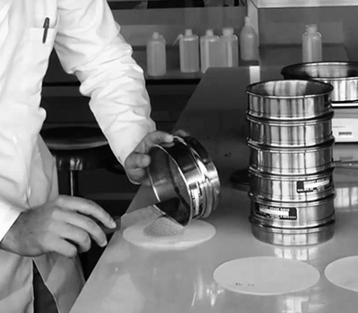 Contamos con un laboratorio propio donde se realiza la inspección de las materias primas y los ensayos granulométricos para determinar el Modulo de Finura, la Curva Granulométrica, etc. También contamos con equipos de